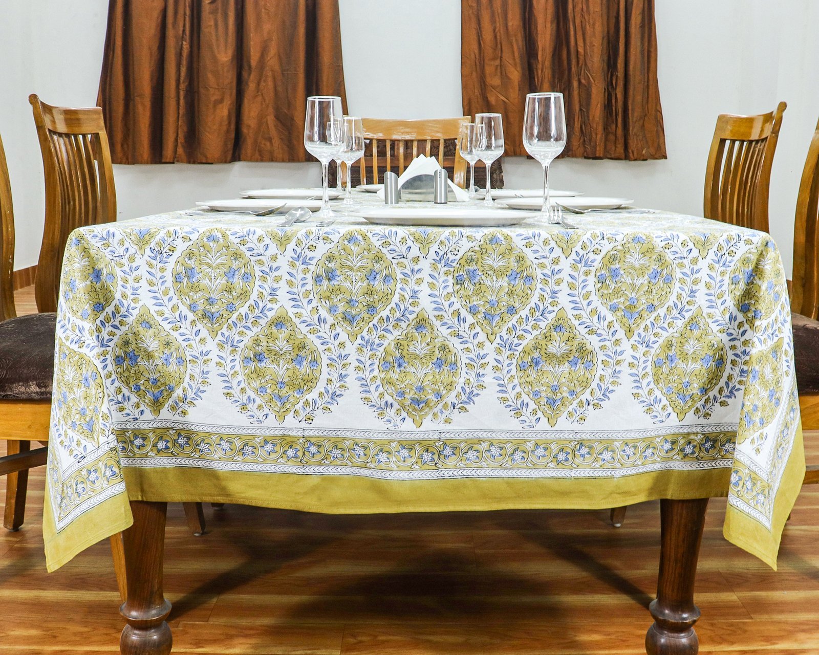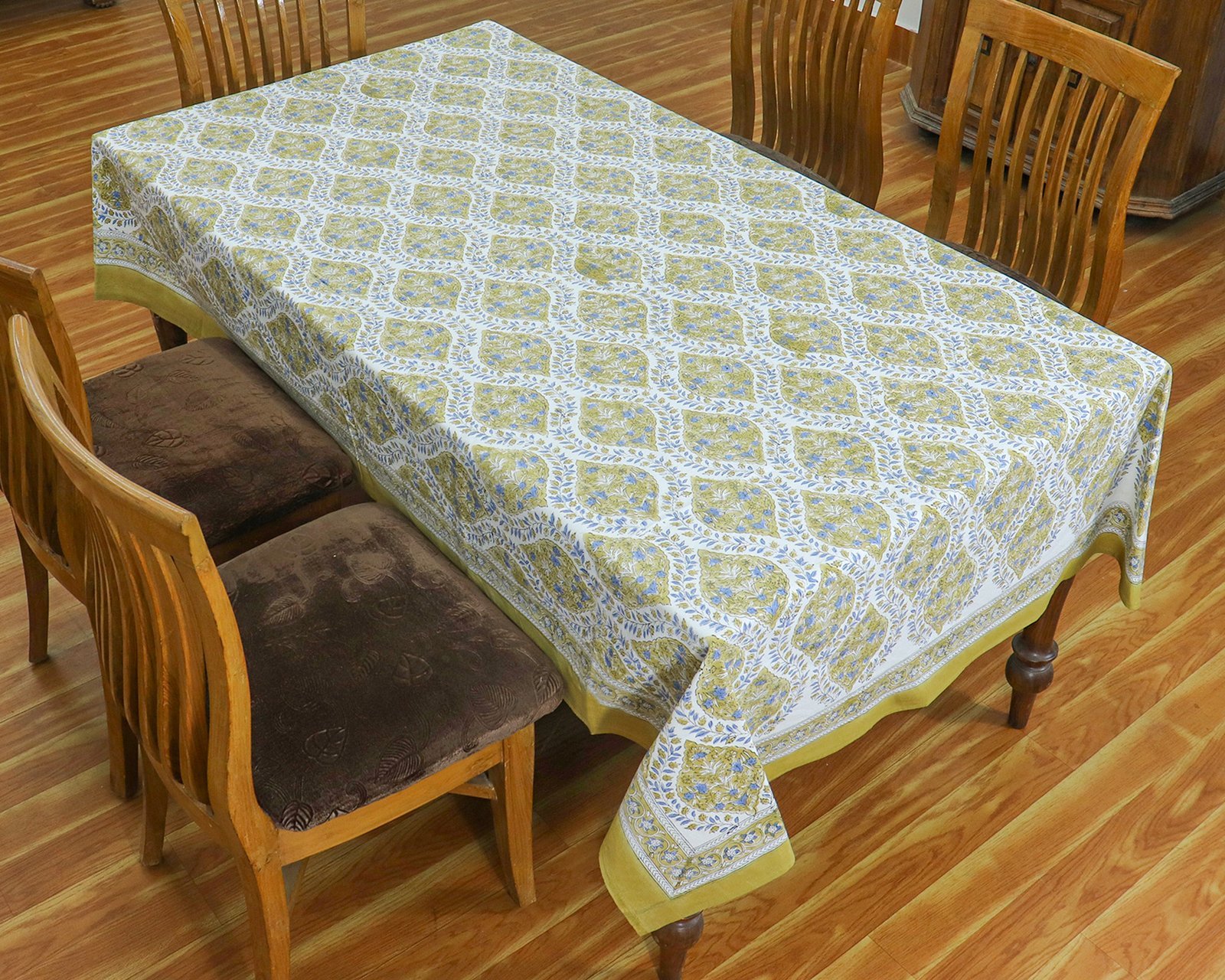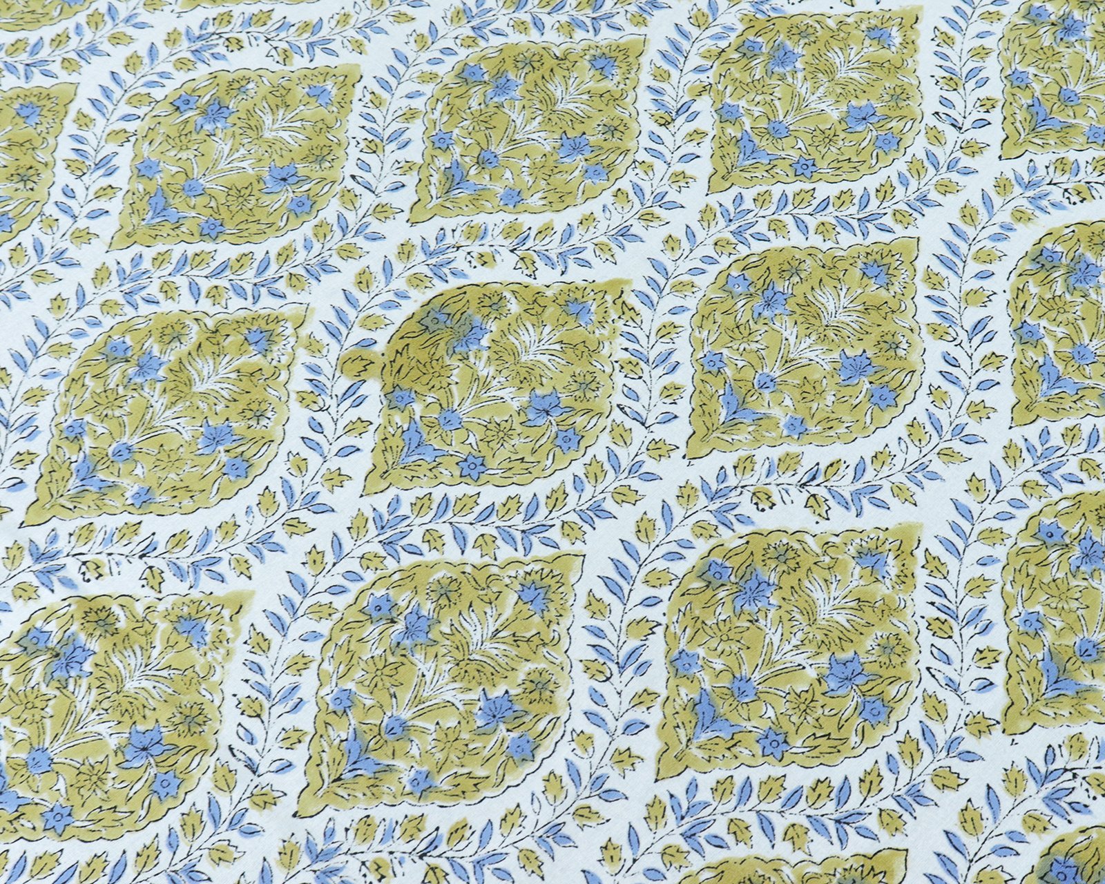 インド 木版染め(ブロックプリント) テーブルクロス ブルー 花柄 プレゼント アジアン インド更紗 インド綿 ハンドメイド エスニック インテリア コットン