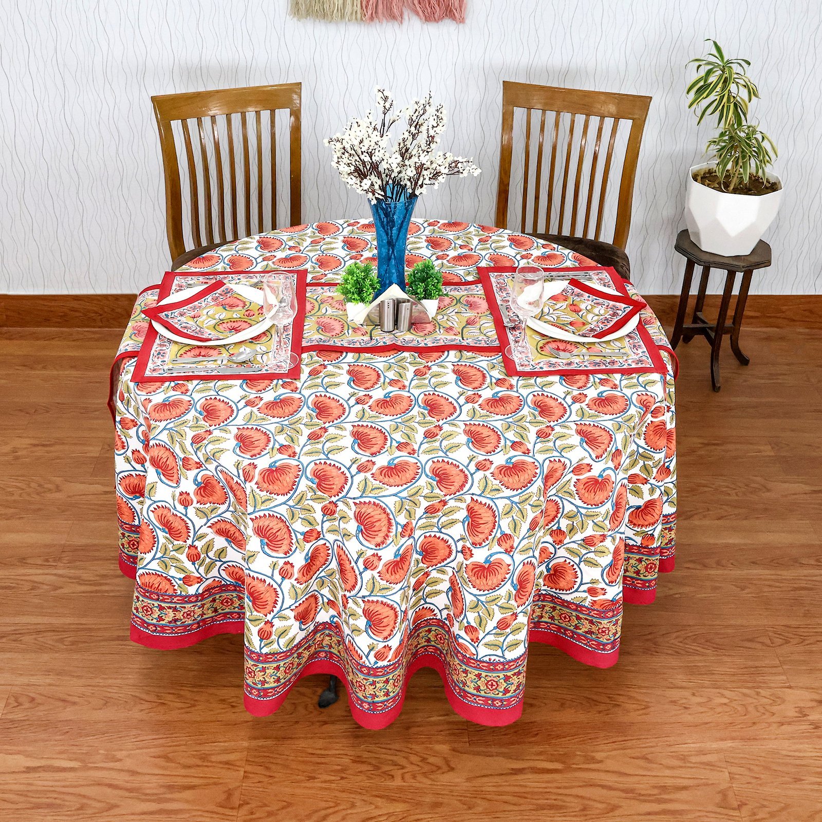 インド 木版染め(ブロックプリント) テーブルクロス 花柄 プレゼント アジアンインド更紗 インド綿 ハンドメイド エスニック インテリア コットン