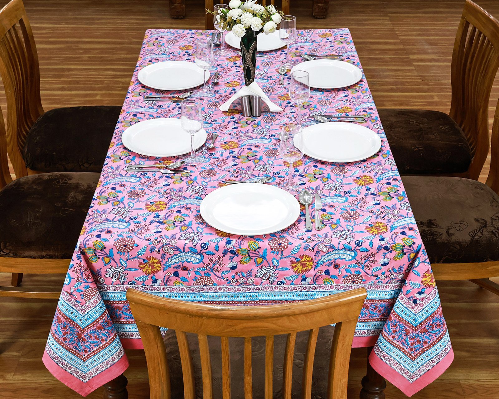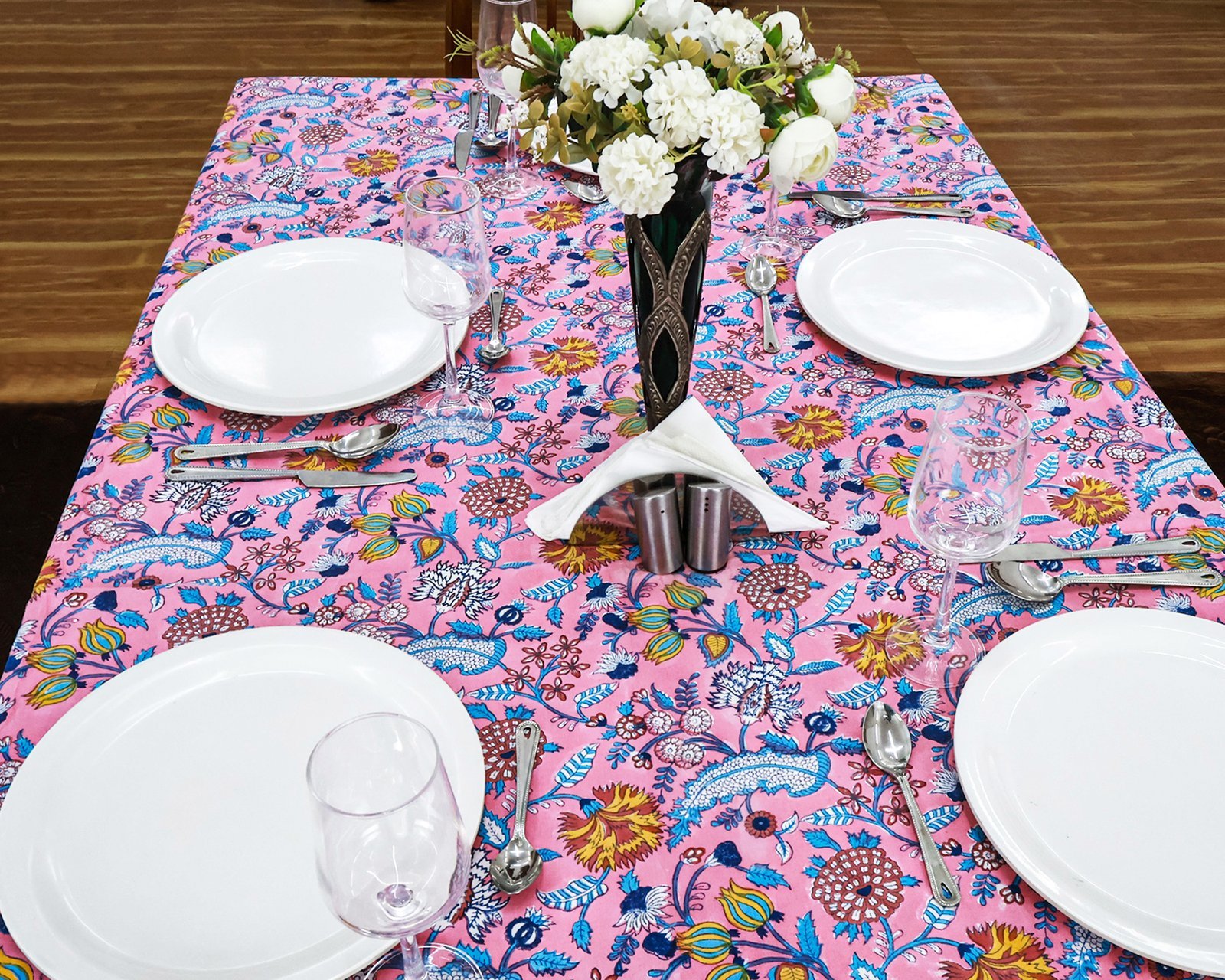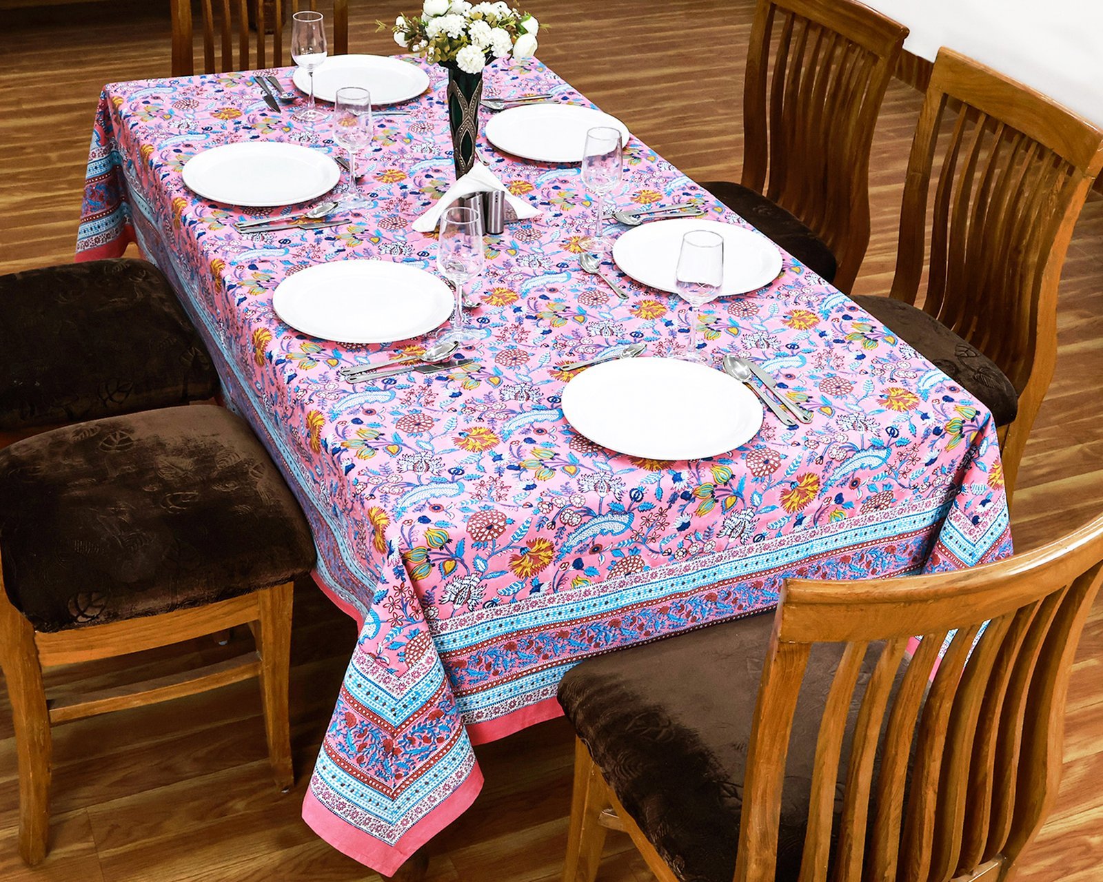 マルチクロス インド綿 ブロックプリントピンクとブルー おしゃれ かわいい 花柄 テーブルクロス ソファカバー シングルベッドカバー エシカル ハンドメイド インド雑貨 アジア雑貨 ボタニカル
