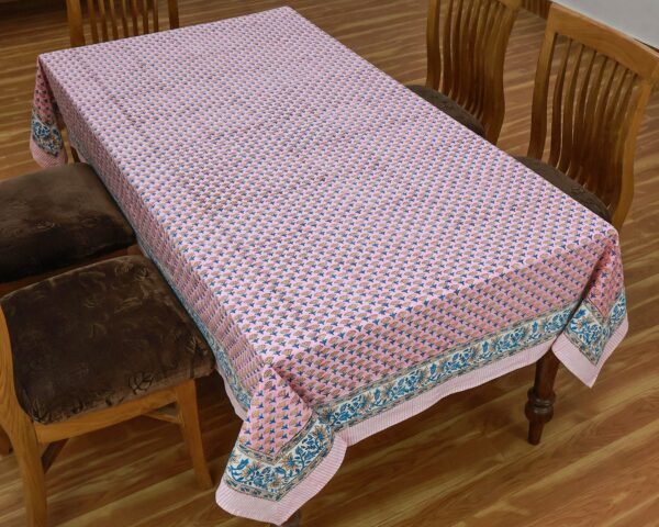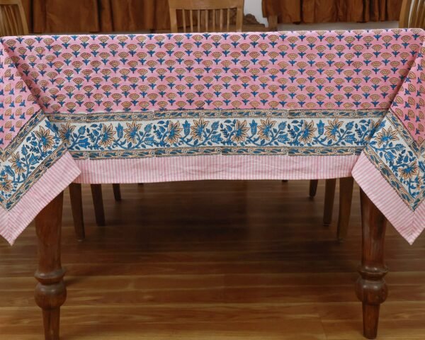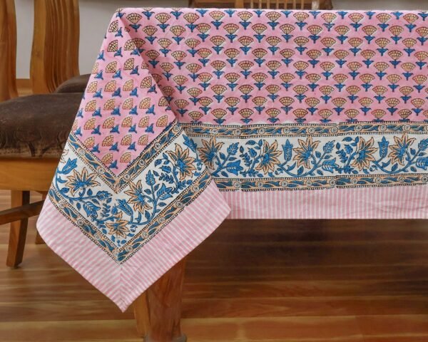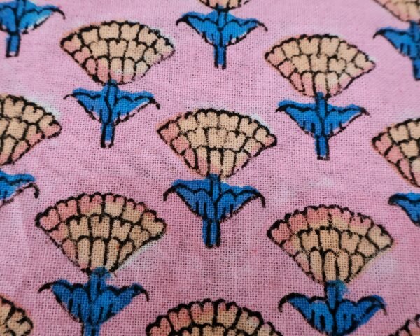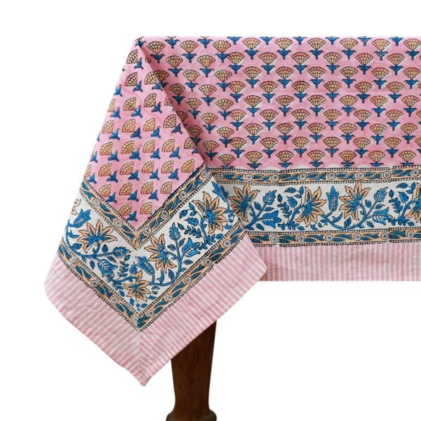 マルチクロス インド綿 ブロックプリントピンクとブルー おしゃれ かわいい 花柄 テーブルクロス ソファカバー シングルベッドカバー エシカル ハンドメイド インド雑貨 アジア雑貨 ボタニカル