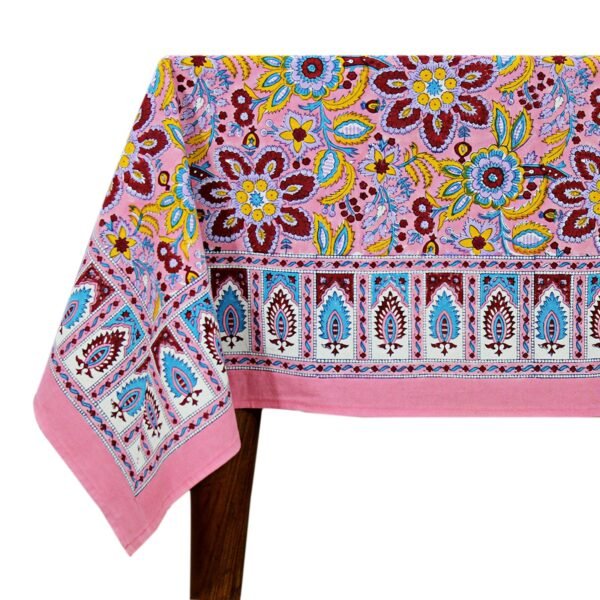 マルチクロス インド綿 ブロックプリントブルーレッドおしゃれ かわいい 花柄 テーブルクロス ソファカバー シングルベッドカバー エシカル ハンドメイド インド雑貨 アジア雑貨 ボタニカル