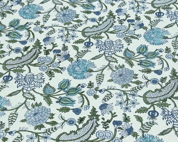 マルチクロス インド綿 ブロックプリントライトグリーンおしゃれ かわいい 花柄 テーブルクロス ソファカバー シングルベッドカバー エシカル ハンドメイド インド雑貨 アジア雑貨 ボタニカル